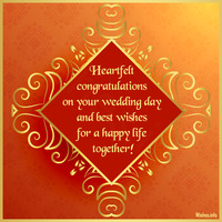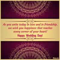 Wish you lots of love, joy and happiness. I wish you to live in peace and in perfect union at least till your golden jubilee! Heartfelt congratulations on your wedding day and best wishes for a happy life together! As you unite today in love and in friendship, we wish you happiness that reaches every corner of your heart! Happy Wedding Day! As you tie the knot with the love of your life today, wishing you years of togetherness and companionship. Your love for each other is obvious and and inspiration to everyone who knows you. Wishing you years of happiness!
